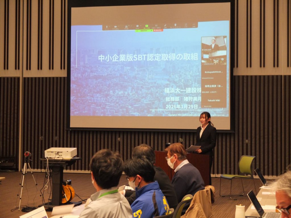 幹事会委員の方々へSBT認定取得の経緯やメリット、CO2削減に向けた自社の取り組み等を説明いたしました。